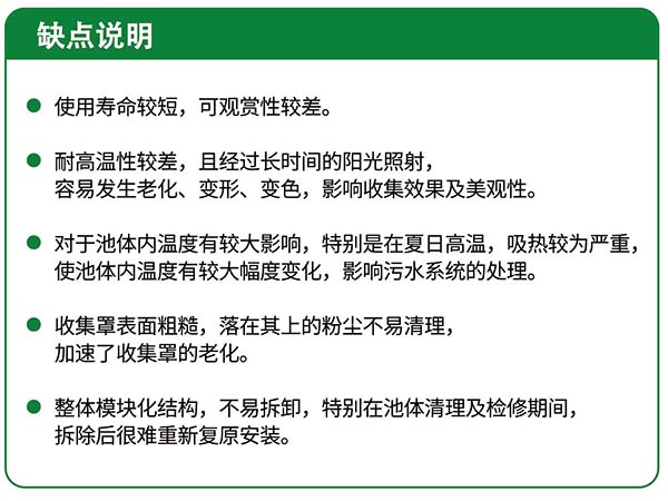 玻璃鋼蓋板多采用有機玻璃鋼,具有鋼的力學特性,有一定的抗拉彎強度;在制造過程中,通過合理的添加配劑,也具有一定的耐腐蝕性,但與 GUPVC加蓋收集方式相比,也有一定的缺點: